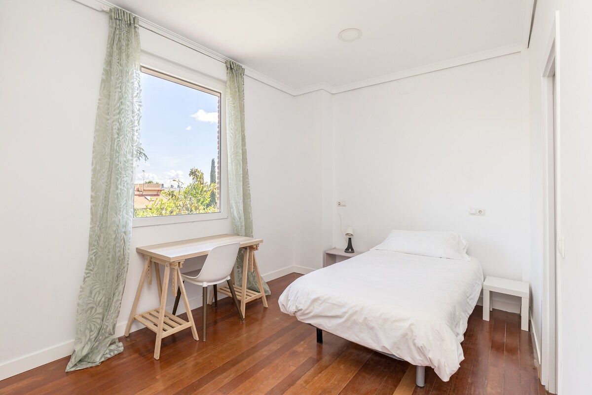 被稱為「Andy的房間」 豪華別墅內安靜的大房間,我們出租的四間房間之一,我們住在這裡,但不會妨礙您,位於僻靜的街區,開車25分鐘即可抵達馬德里。 這個房間位於一樓,是房子最涼爽的部分,但有電扇。 當只有1位或2位房客時,提供一張桌子和椅子供您學習。 這間房間可通過我們的書房進入後花園的美麗露臺。 最多可供 4 人入住。 所有房間都有鎖