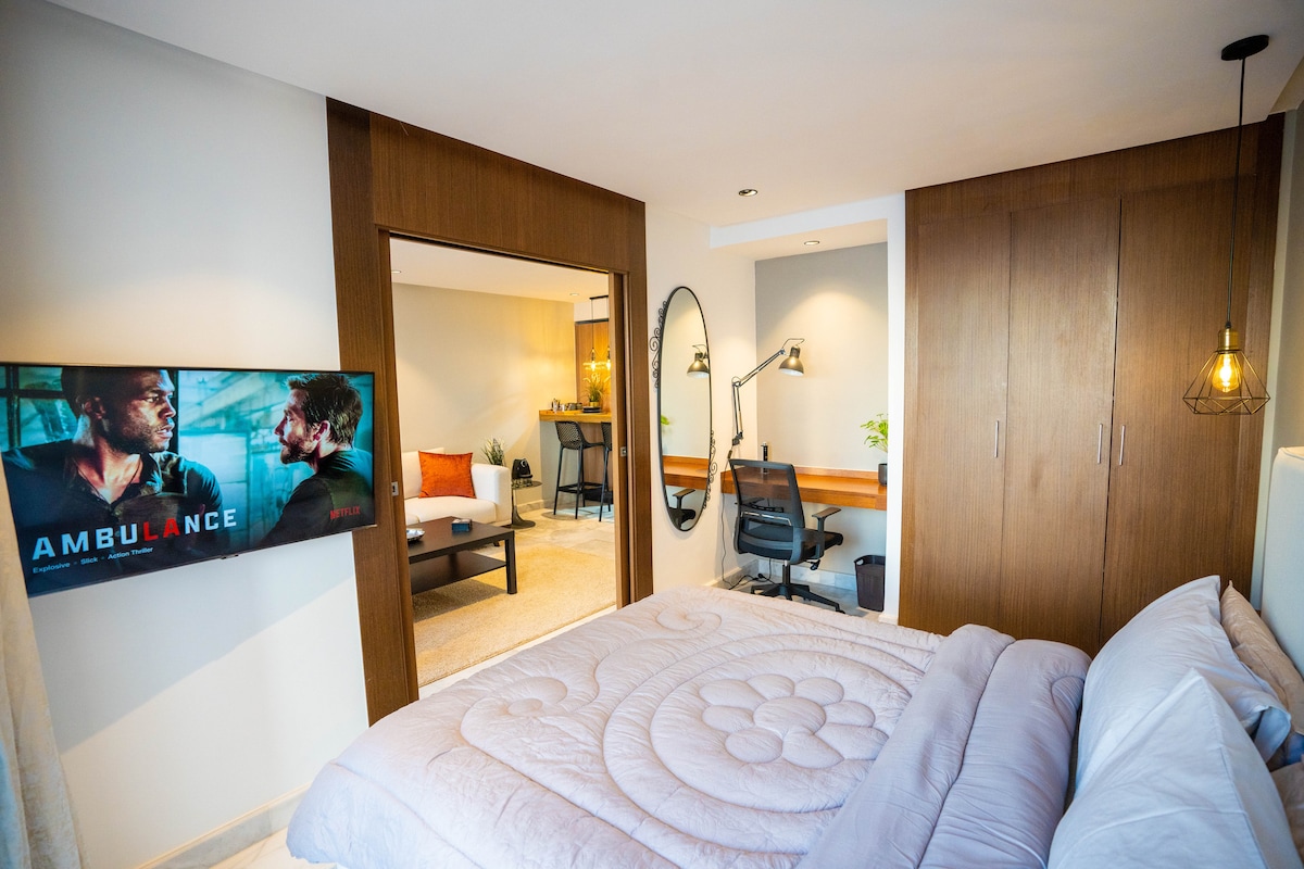 這間豪華的單間公寓配有豪華的豪華飯店,讓您在舒適優雅的環境中放鬆身心,專門為您提供極致的舒適感。 100 Mbps光纖WiFi和55吋智慧電視可使用IPTV ,將為您提供卓越的體驗。 您會在您抵達時獲得巧克力! 我們的優越位置,距離海灘僅5分鐘路程,讓您充分享受這座城市和卡薩布蘭卡最好的餐廳。