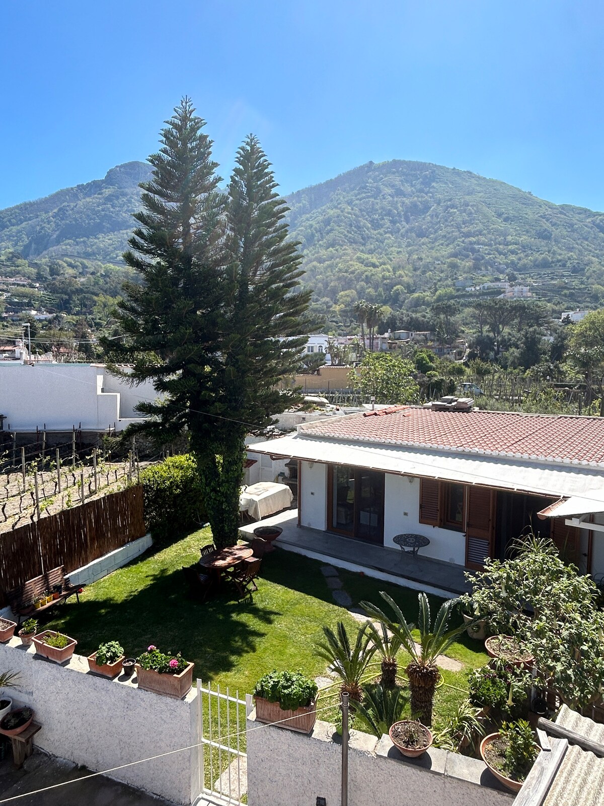 Casa Amena, suspended between the sky and the sea, located on the hill of “Neso” (Oneso) which overlooks the town of Lacco Ameno, worldwide famous for its thermal waters. It is near the ancient Villa Zavota which now is known as Villa Parodi Delfino. Giuseppe Garibaldi, stayed there in 1884 to recover with the aid of the thermal waters from the wounds suffered during the battle of Aspromonte. Our House offers small apartments, completely furnished suitable for families. - living room equipped with a with kitchen corner . - master bedroom - spacious bathroom with shower -lush mediterranean garden: lawn/ solarium/barbecue, vegetable garden, fruit trees, citrus trees and vineyard over 2000 m2 The furnishings are functional, modern and well looked after -the kitchen is fully equipped in order to fix your own breakfast or other meals -parking available for motorbikes and cars -Our Apartment is located in a very quiet spot however it is only 5 min on foot from the town of Lacco Ameno, with its thermal spas, shops, beaches, the marina and museums. It is also near the main port of Casamicciola. Andrea Mennella is here to welcome you! ________________________________________