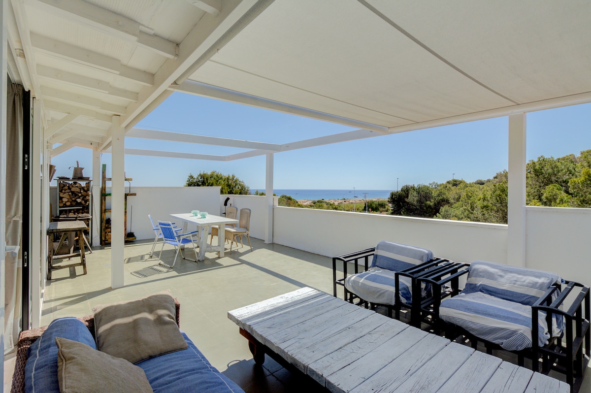 海濱第一線,位於艾利坎特省的坎佩洛市,穆查維斯塔海灘。近140平方公尺的翻新房屋,共有2層樓:廚房-餐廳、陽台-洗衣房、洗手間、客廳-餐廳、帶有休閒和工作區的玻璃日光浴室、帶有餐廳和遮陽篷的戶外庭院、2個露台(躺椅)、浴室、3間臥室和免費停車位。 所有臥室均配備蚊帳、天花板風扇、暖氣和空調。 私人住宅區。餐廳。連接阿利坎特和沿海城市(電車、巴士)。英語。