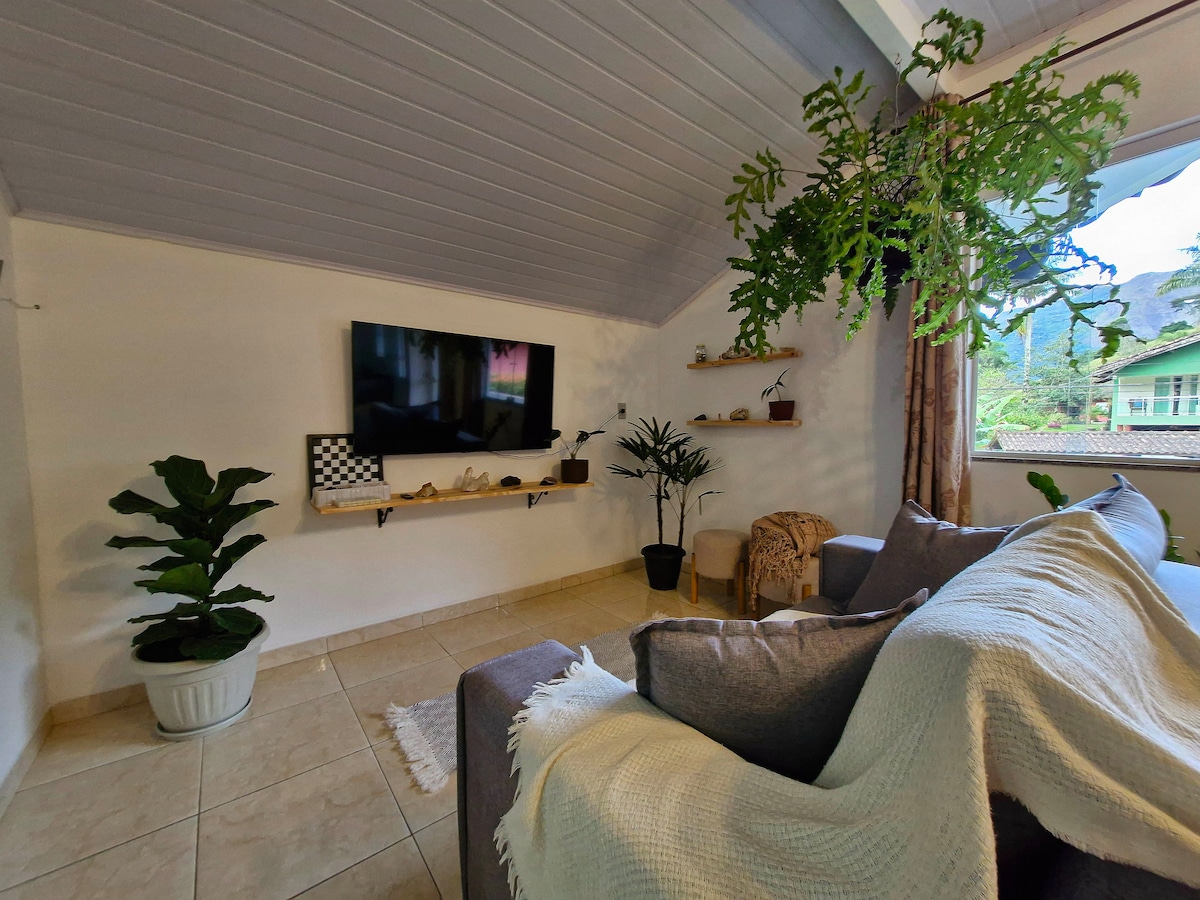 Lugar ideal para se viver dias inesquecíveis em meio a natureza a apenas 4,5km do Centro comercial, gastronômico e turístico na cidade de Nova Friburgo/RJ. A casa é equipada com cozinha completa (fogão, forno de micro-ondas, geladeira, liquidificador, sanduicheira e utensílios em geral...), wi-fi, sala com smart tv, quartos aconchegantes, estacionamento próprio e amplo espaço gourmet com churrasqueira com espeto, grelha, tábua e faca, tudo isso em meio a jardins e vegetação de reserva natural.