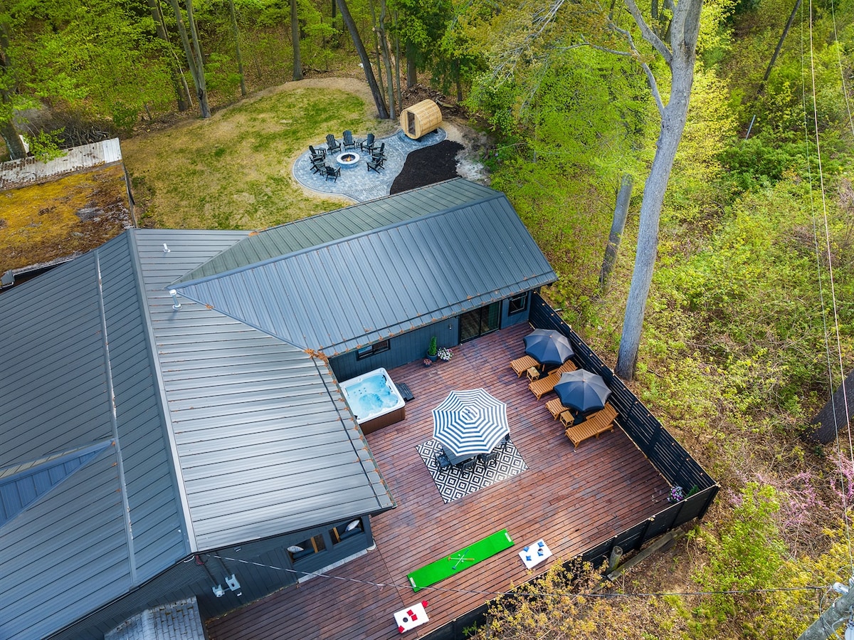 這棟美麗的現代化房源坐落在美麗的林木環繞之中,讓您舒適地放鬆身心。 可看到壯麗的樹木景觀,室內自然光線充足。 享受室內/室外壁爐,在按摩浴缸中放鬆身心,在後院露臺上娛樂和烤肉,並在後院火坑旁放鬆身心。 在備品充足的廚房裡做飯。 遊戲室有撞球桌,溫暖的車庫裡有乒乓球桌。 遠離塵囂,享受這個獨特的度假體驗,距離索加塔克 (Saugatuck)、密西根湖海灘和芬恩谷 (Fenn Valley) 葡萄酒產區僅幾分鐘路程。歡迎攜帶狗狗入住。