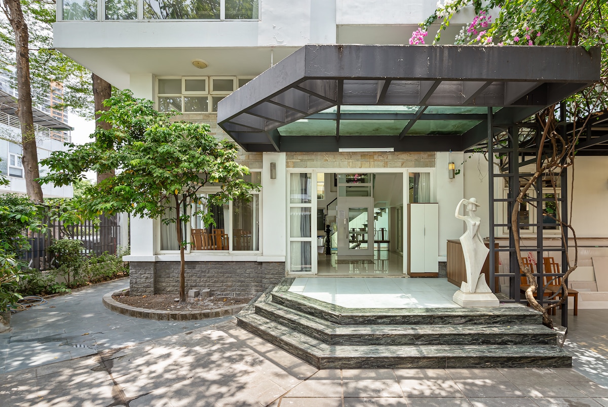 Tọa lạc tại trung tâm Quận 2, khu vực dân cư cao cấp với an ninh tuyệt đối, villa siêu lớn và sang trọng mang đến không gian nghỉ dưỡng tinh tế theo phong cách Indochine độc đáo. Lấy cảm hứng từ ngôi nhà thời thuộc địa Pháp ở Đông Dương – villa hòa quyện nét thanh lịch Pháp với vẻ đẹp Á Đông: trần cao, cửa sổ lớn, sân trước kết hợp hồ bơi cho những bữa tiệc BBQ ấm cúng, có nhiều phòng giải trí: Bi-a, sân tập golf mini, xem phim, nghe nhạc và hát cho nhau nghe....