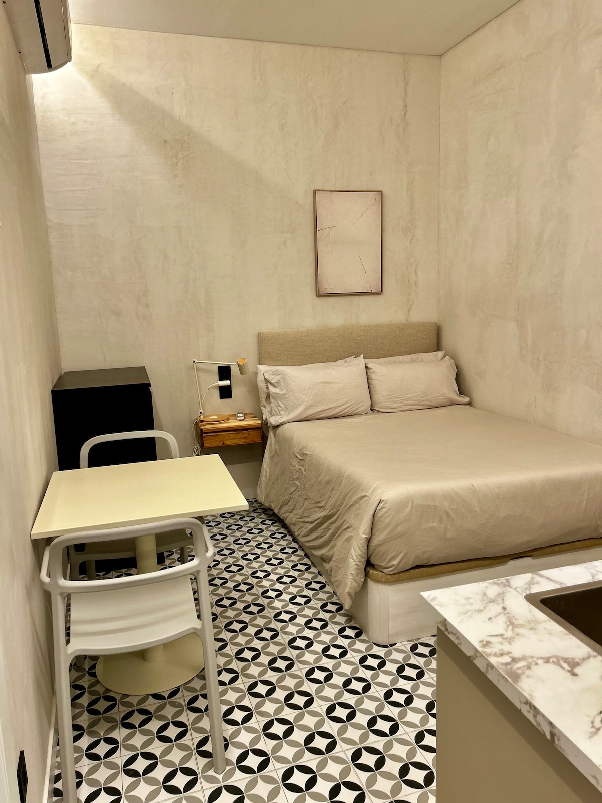 I want to welcome you to one of my new Suites in the center of Barcelona. Around 49 square meters, perfect for couples and solo travelers looking for a unique experience in the most authentic Barcelona, surrounded by the best shops, restaurants. Tourist spots just a few steps away. Enjoy this wonderful space filled with natural light, with a modern and warm decoration that blends harmoniously with the 3-metre-high ceilings and the recently restored original mosaic floors. No lift available