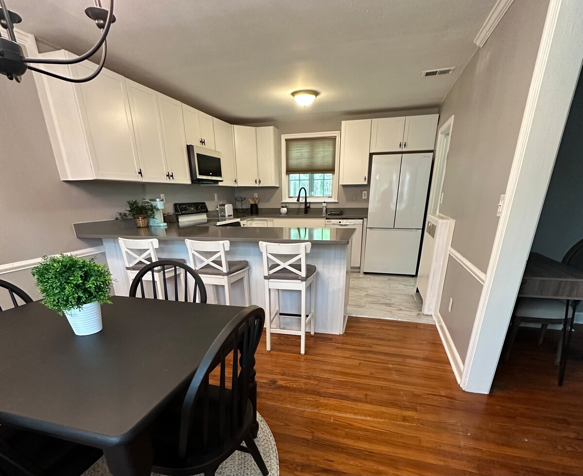 Enjoy your stay in this cozy, newly remodeled Tudor home in a historic and architecturally eclectic neighborhood in Catonsville, MD! You’ll be close to everything but far enough to enjoy a relaxing trip. The home features Four bedrooms, two full baths, a fully stocked kitchen, a full basement, and 18ft ceilings on the main level. You will enjoy 65, 42, and 32-inch smart TV's throughout the home. In addition, a private upstairs main suite with King size bed, sofa seating area, and workstation.