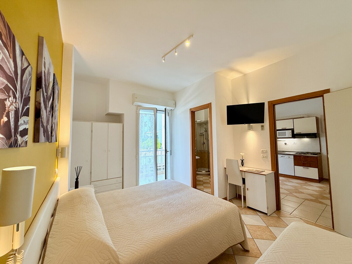 La vostra "Casa delle Vacanze" in centro storico e a venti metri dal mare. Bell'appartamento con camera da letto con letto matrimoniale e letto singolo/castello e zona giorno con cucina e divano letto, microonde, macchina Nespresso, 2 TV 32', 2 condizionatori caldo/freddo, in un Residence moderno ed elegante, dotato di tutti i comfort e con tantissimi servizi per grandi e piccini per una vacanza all'insegna del relax.