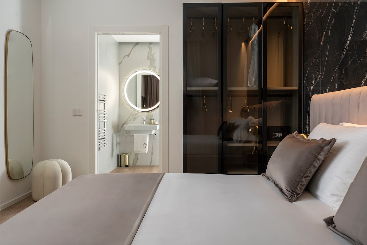 在Marina Suite Apartments享受奢華和精緻的體驗。 套房聲望:這是最寬敞、最負盛名的公寓! 位於一樓,提供大客廳,配有單人沙發牀*和小廚房、1間雙人臥室、1間配有2張單人牀的臥室和2間帶淋浴間的浴室。 黑色大理石的細節為房間增添了一點精緻,為您帶來難忘的生活體驗,營造出奢華的氛圍。