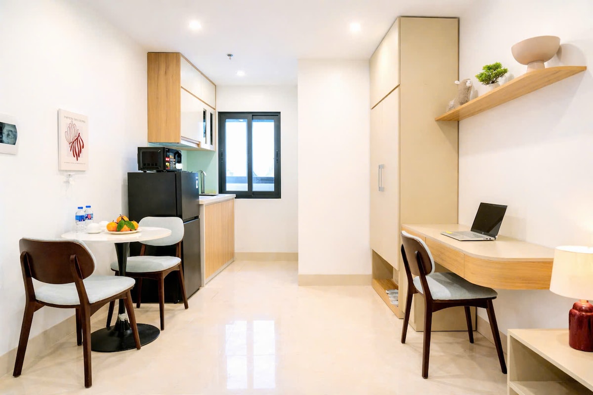 投影機、Netflix、每間公寓都有私人陽臺 設備齊全的廚房 免費行李寄存 安全的機車停車位 公寓空間: 電梯通道 單向空調(僅冷氣) 人客權限 您可以使用陽臺外房間的洗衣機 附加費(如有) 提前或延遲入住:69,000越南盾/小時 損壞或損失(如有):20萬至200萬越南盾