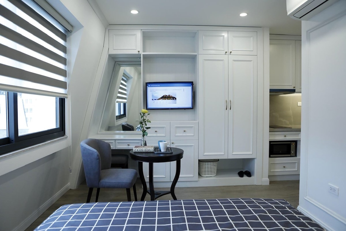 在Phan Ke Binh街享受全新的單間公寓,毗鄰許多餐廳、商店和市場。 單間公寓配有現代化的亞洲風格家具、加大雙人牀、電視、沙發、餐桌、步入式衣櫃、廚房和獨立浴室。 該套房公寓配有高級牀墊、全新牀墊、牀上用品、家具和電器,如遙控窗簾和電動馬桶。 新翻修的大樓提供住宿保安、室內摩託車停車位和洗衣設施。
