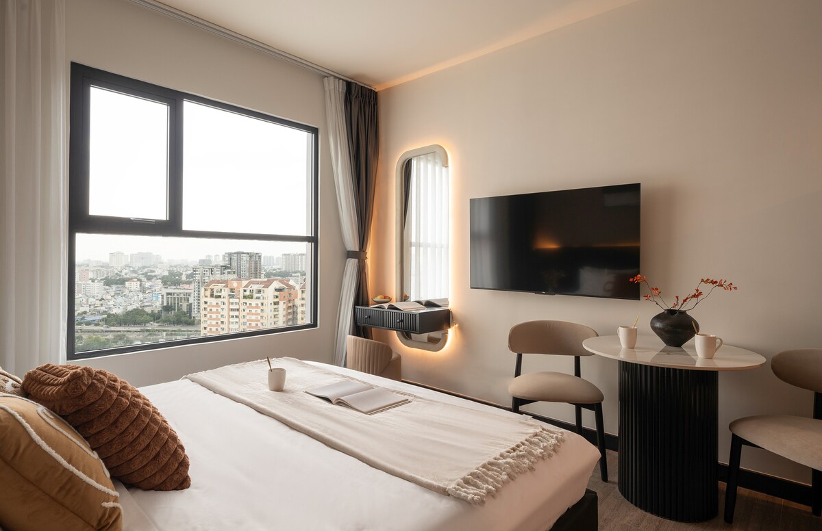 -Since 1st Jan 2026,the platform increased fee and tax, if the rate hasn't reached your budget, we are open to negotiate to have win-win solutions. Do not hesitate to drop us a message here. Prefer for week/ mid-long term rent -Modern studio is located in prime central in Dist 4, only 10-15mins by car/grab to reach Dist 1 with all tourist attractions and everything you need. -This studio included fully furnished: kitchen, washing machine and dryer, big smart TV, gym, sauna and 2 swimming pools.