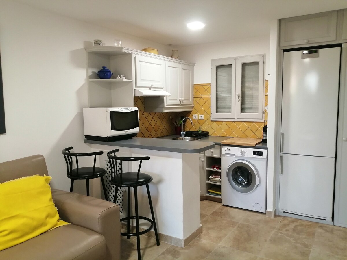 Located 1.6 km from the city center, the fully equipped T2 has a private enclosed garden, a parking space on the property and an exclusive access to the swimming pool from the beginning of May to the end of September. Quiet and surrounded by olive trees, you will find all the shops and supermarkets in town. Summer festivities. Animals are welcome. Baby equipment and free provision of bicycles. Warm and caring welcome. Do not hesitate to contact us