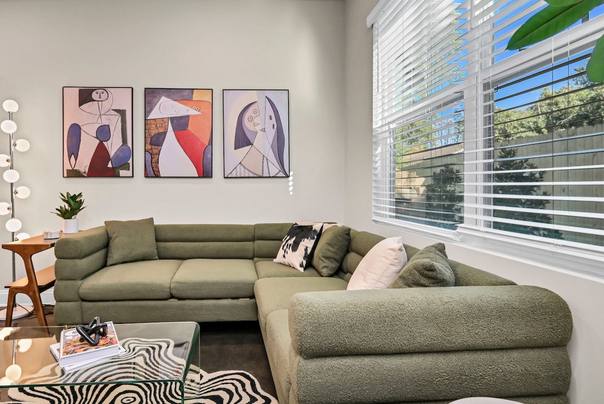 Downtown Blue BoHo w/ outdoor spaces, grill & FP