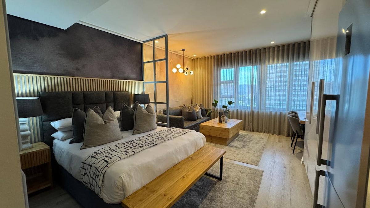 A chic, modern apartment with a big balcony, in the heart of trendy Bree Street, surrounded by top-notch restaurants and just a short walk to all city highlights. Stylishly decorated with all amenities for a super comfortable stay. Perched on the 21st floor, enjoy breathtaking views of the city, Stadium, Robben Island, Signal Hill, and the sparkling sea. Relax on the rooftop terrace with a refreshing drink from the bar. Just a stroll away from the CTICC and the V&A Waterfront. @CapeTown16onBree