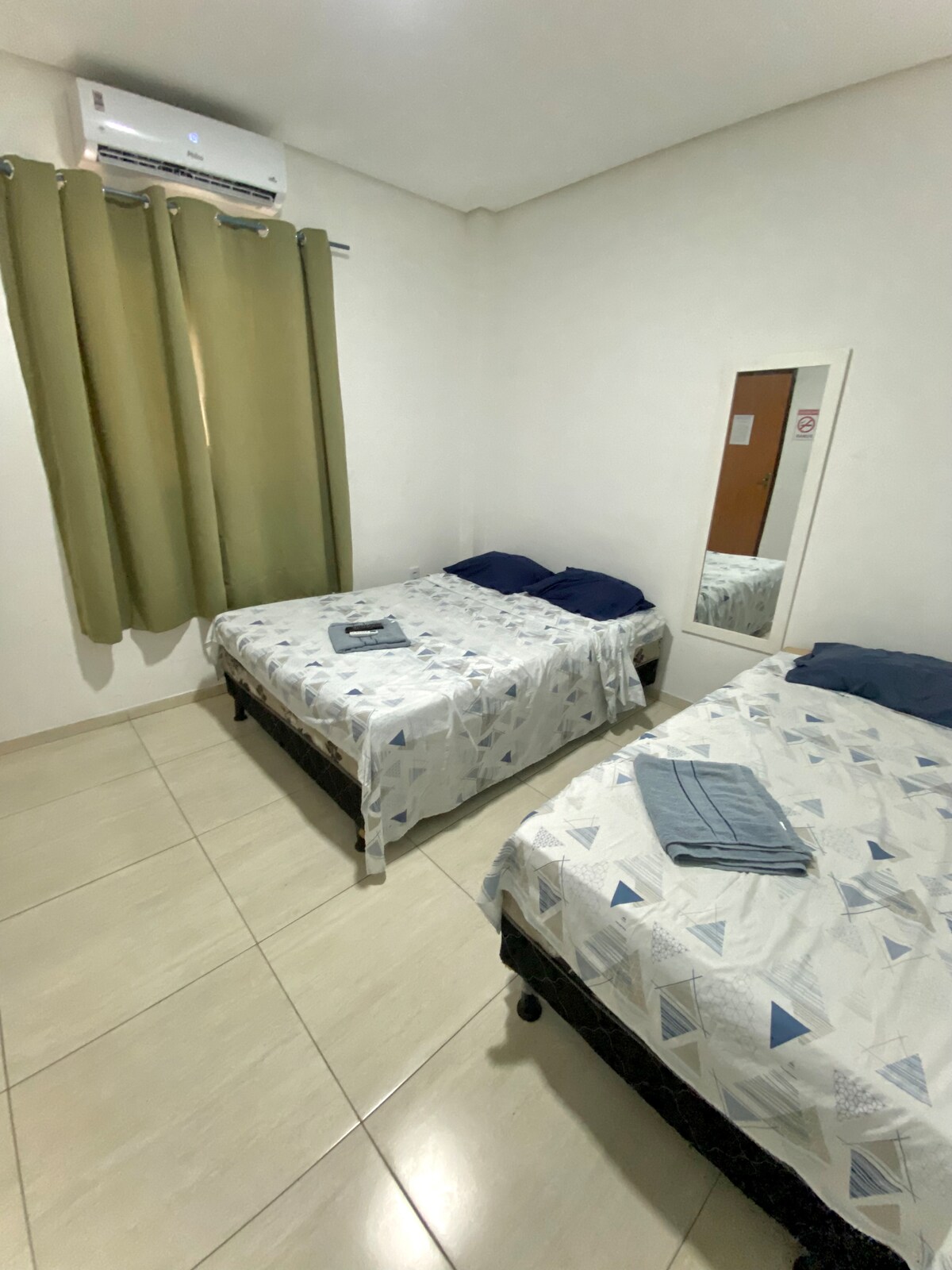 Quarto 3 da Pousada Família O melhor custo benefício da cidade! (AMBIENTE DE FAMÍLIA) Um quarto que oferece privacidade, segurança e conforto para as suas estadias! Localizado no Centro Turístico de Juazeiro do Norte-CE Próximo da Praça Pe. Cícero, shopping, Horto, museu, Centro, postos de saúde. Uma localização realmente PRIVILEGIADA! 🛏️1 cama casal 🛏️1 cama solteiro ❄️Ar condicionado Geladeira Cortina blackout ❗Banheiro(compartilhado com o quarto ao lado)❗ Quarto privado