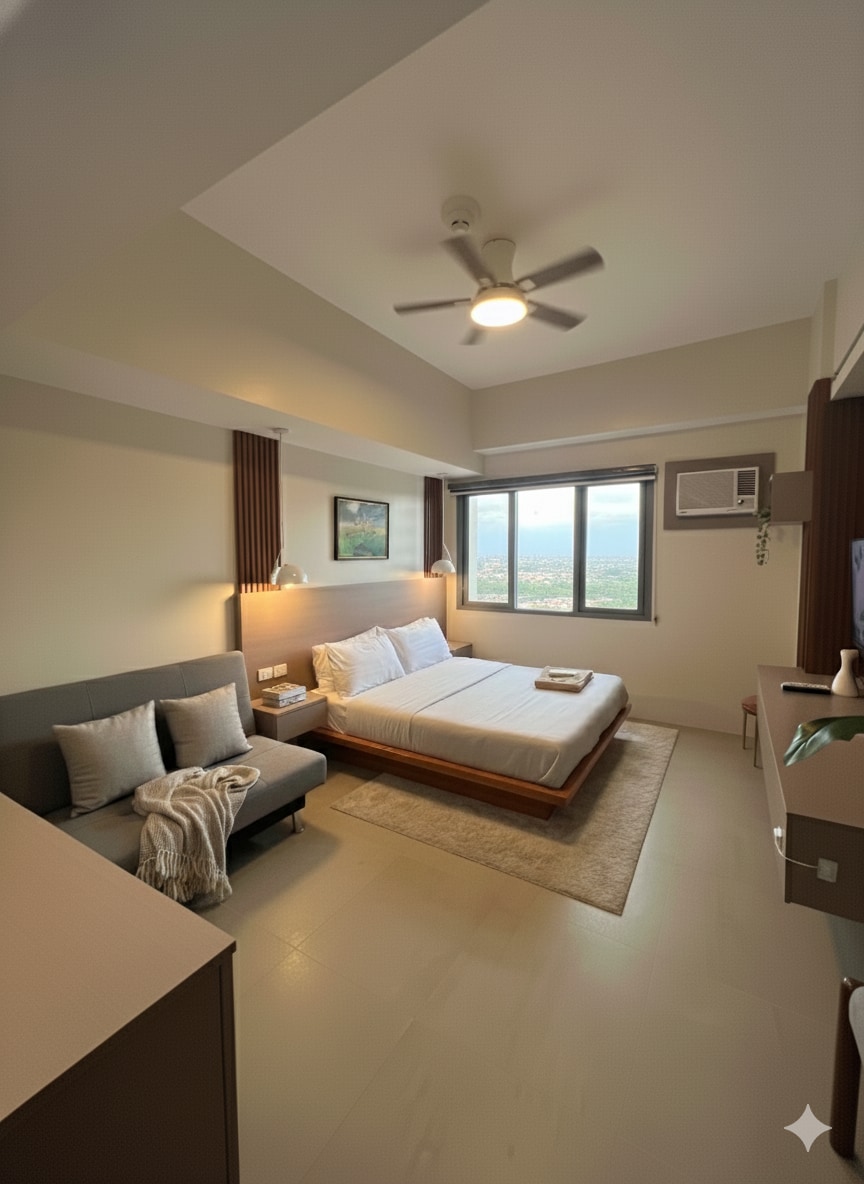 在我們時尚的23.80平方公尺單間公寓中,體驗舒適、便利和城市景觀的完美融合,位於宿務市中心,距離IT公園、頂級咖啡館、主要商場、超市、夜生活場所和必看景點僅幾步之遙。 無論您是度假的家庭、情侶度假,還是數位遊牧民遠距工作,我們設備齊全且精心設計的空間都是南方皇後城的完美城市度假勝地。