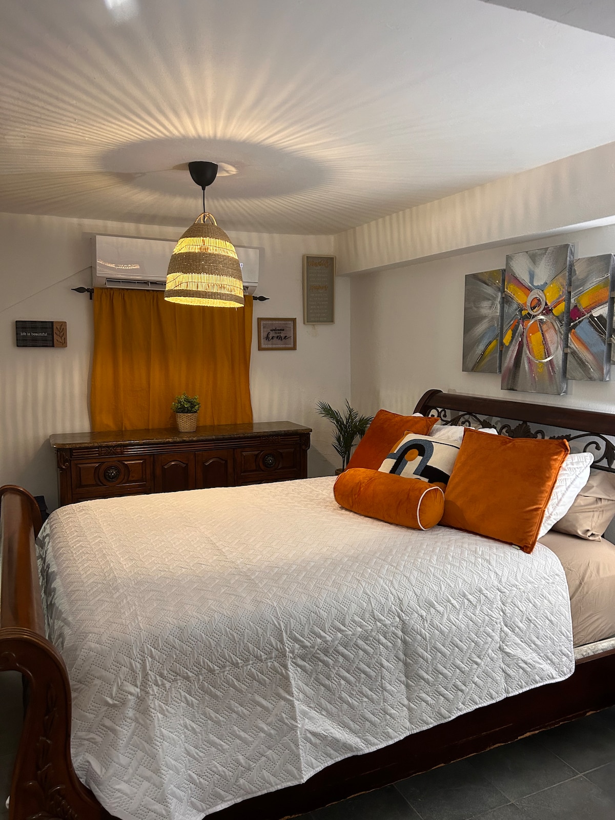 在這個位於市中心的地方享受時尚體驗。 公寓位於阿瓜迪亞 (Aguadilla) 的「魅力之城」。 我們的位置非常方便,因為它靠近幾個城鎮,您可以前往歷史名勝、海灘和優秀的餐廳。 它有一張舒適的雙人床、一臺大電視、工作區和一個寬敞的浴室。 我們以極大的愛心設計了這個空間!! 它有熱水、您可以使用的海灘用品和一個美麗的陽台。