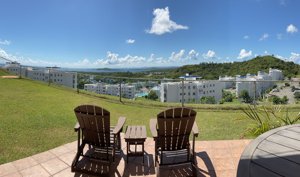 一樓舒適的單間公寓,俯瞰熱帶景觀和海景。距離聖胡安國際機場45分鐘車程,靠近盧基約海灘和法哈多海灘。其他景點包括el Yunque、騎馬、浮潛、渡輪前往別克斯島、庫萊布拉島和伊卡科斯島。 回到單間公寓,您可以享受一張雙人床和一張全尺寸沙發床(可容納2名6歲以下兒童)。入住超過4天的房客可享受洗衣服務。