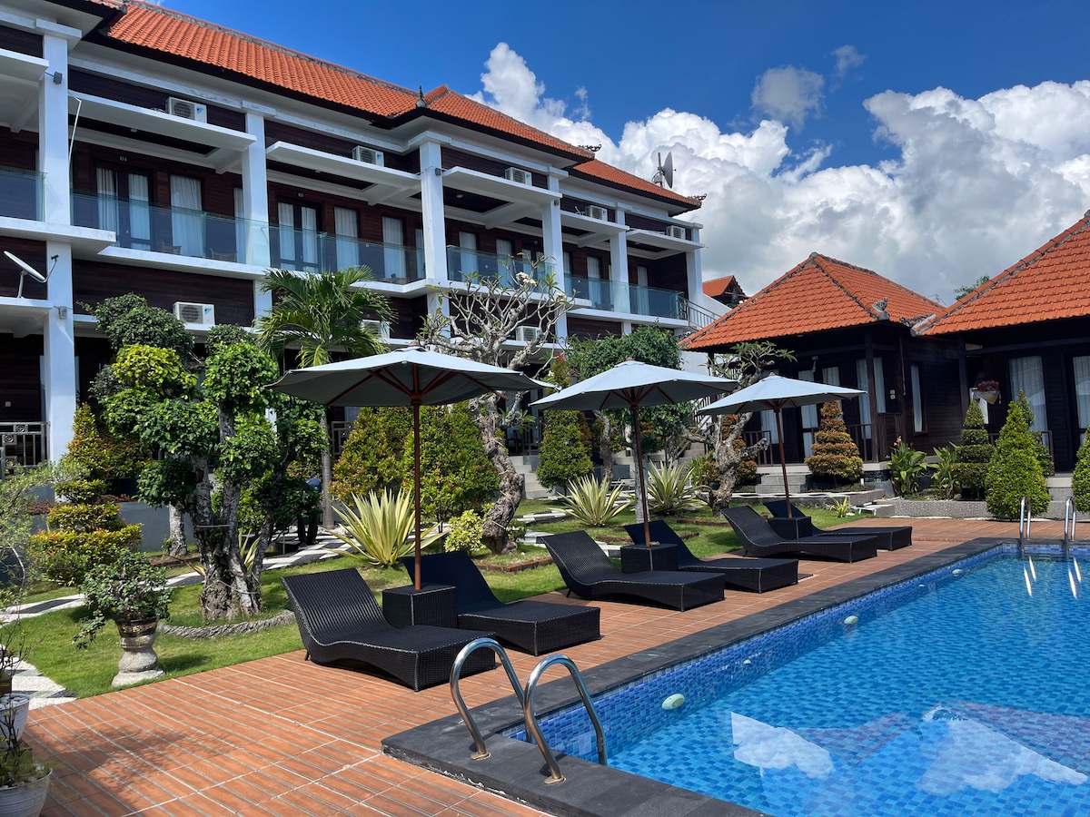 Just a short walk from Mushroom Bay, this boutique resort and yoga retreat offers a peaceful island escape in Nusa Lembongan. Set in lush tropical gardens, it features a crystal pool, pool bar, and chill out space. Seven charming, spacious bungalows with private balconies overlook the lush, tropical gardens. All rooms feature a comfy king bed with mosquito netting, AC, and open-air bathrooms. Enjoy daily yoga, snorkeling tours, scooter hire, and easy access to beaches, cafés, and restaurants.