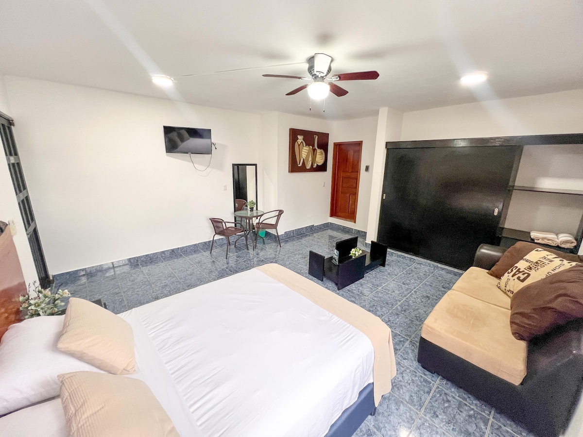 可供 1 人或 2 人入住的房間,配有開放式廚房晚餐、私人泳池和您自己的入口。 房間外有露臺和花園。房源距離市中心的主要廣場只有兩個街區,距離潟湖只有4個街區。 安靜的地方,有很多空間和和諧。在您入住期間,我們提供咖啡、茶和水。 基本食物準備區域。 網路和空調。