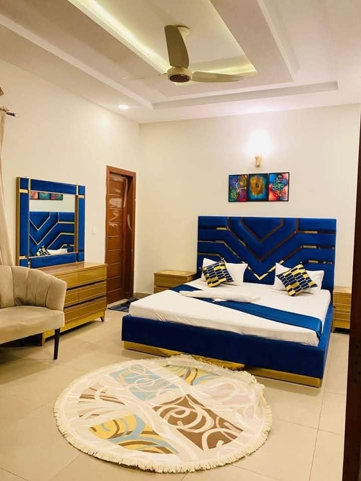 Luxurious designer anexy with servant 24/7, restaurants 5 mins away (food panda delivers), security guards present. Every facility is available in the kitchen-oven;coffee machine;basic grocery;cutlery;fridge etc. outdoor bbq and dining setup, centrally air conditioned with exotic scenery. -8% discount on free and fair use policy (details will be shared) -No drugs, alcohol or parties allowed -Pets allowed but not inside the house