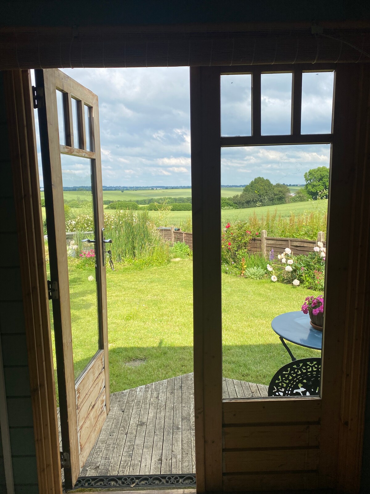 Beautiful log cabin is located on top of our garden. We are friendly family with two children, dog, hens and fish in the pond and plenty of wildlife buzzing around. We are situated in a countryside, with beautiful open views, 10 minuets drive from Hitchin Parking space available. Home cooked Breakfast is available if you notify us at least a day before your arrival. Cost of it is £10 per person.