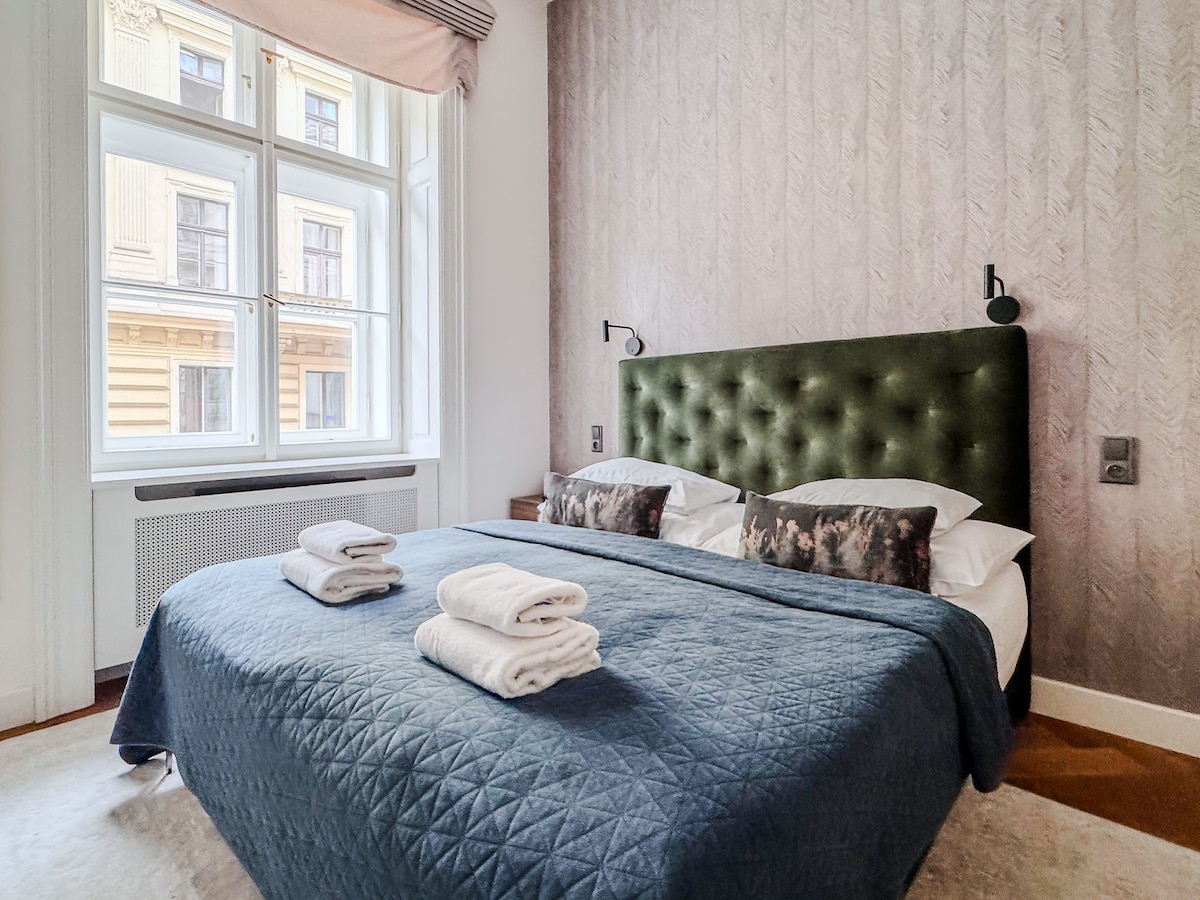 2023年頂尖現代經典設計比賽入圍者。 入住您見過的最時尚的公寓。 請注意:不是派對公寓。 最佳位置: -距離國家博物館和溫塞斯拉斯廣場2分鐘路程。 -距離主要火車站3分鐘。 -距離最美麗的Riegrovy sady公園1分鐘路程。 設備 -觀看家庭影院品質的電影-巨型螢幕 -在紅外線桑拿房放鬆身心 設計 -精心挑選的元素和家具,突出歷史風格