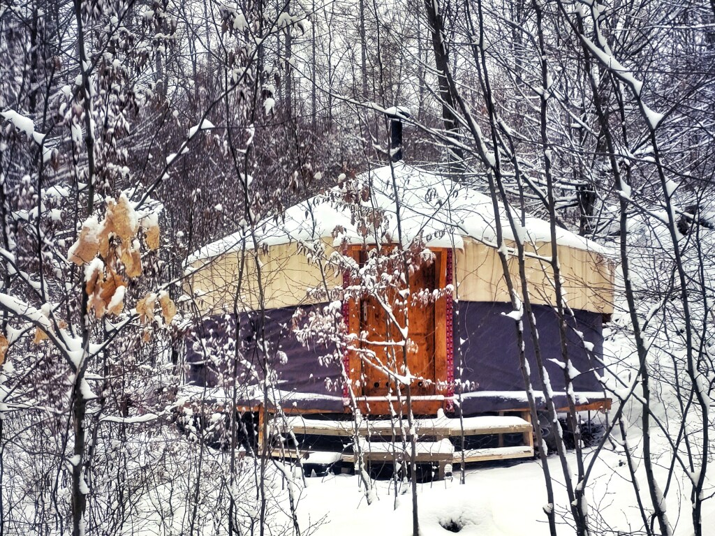 Jurta nabízí příjemnou atmosféru malované kruhové stavby. Cena je za 4 osoby. Každá další je za příplatek 450,- kč. Je izolovaná ovčí plstí. Místo nabízí finskou saunu a ochlazovací káď (příplatek 1000,- Kč) vyhřívaný koupací sud (příplatek 1000,- Kč), turistické, cyklistické i vodácké cesty.K dispozici ohniště, grilovací rošt, kotlík na vaření. Sociální zázemí je ve zděném domku u jurty. Připraveny brikety do krbových kamen, dřevo k táborovému ohni, pro topení v sauně i pod koupacím sudem.