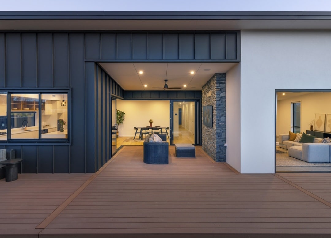 A 2020 one storey built modern spacious home (approx 240 sq m) situated on a hill boasting amazing lake and mountain views, whilst still being a short walk to the lake and Wanaka township. Sun drenched, warm family home with separate living and bedroom wings with a connected partially covered central deck which provides an attractive outside dining option. Excellent feedback eg Charlie -Aug 23 said "excellent house, view was awesome. House is much better than pictures and pictures were great'