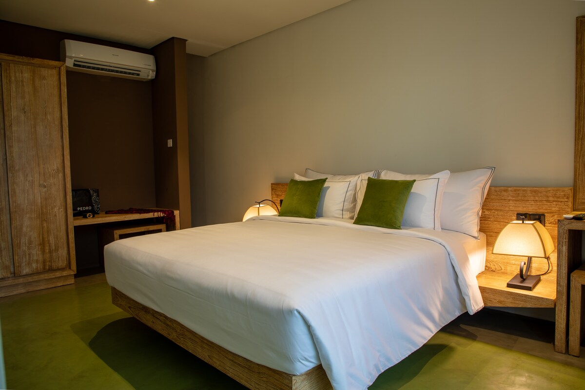 Escape to Aqua Pavilion at Kandy Victoria Eco Resort, one of the best boutique hotels in Kandy, Sri Lanka. This luxurious room features a private balcony and a chill tub, offering stunning views of Victoria Reservoir and lush mountains. Enjoy the perfect blend of traditional and modern architecture, complimentary breakfast, and serene surroundings in a calm residential area. Guided hikes, free bicycles, and personalized service complete your unforgettable stay.