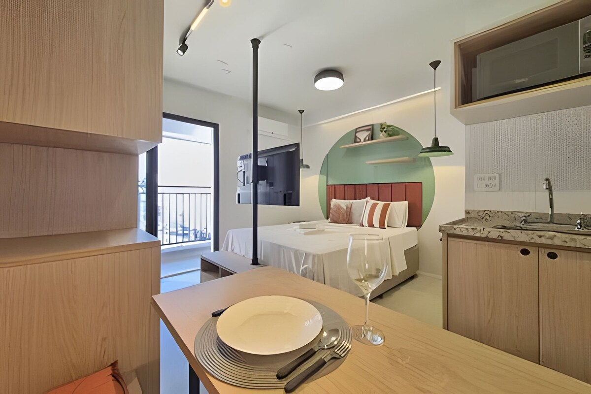 在ON Vila Olimpia的34平方公尺的單間公寓中體驗聖保羅的風格,專為追求魅力、現代化和全面功能的情侶和專業人士設計。 非常適合短期或長期住宿,空間在單一環境中結合了舒適性和實用性。 從高樓欣賞令人驚嘆的城市景觀,配有玻璃封閉的空調陽臺,讓您在任何天氣下都能欣賞風景。 大型且設備超好的公寓,讓您感到舒適和方便。