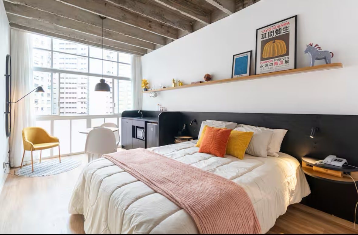 該單間公寓位於市中心最高建築的31樓,擁有現代化和溫馨的設計,以及令人印象深刻的城市景觀。 從窗戶可以欣賞到安漢加巴烏谷(Anhangabaú Valley)、歷史中心、Av. 保利斯塔:聖保羅最美麗的景觀之一。 這是SampaSky所在的建築物,步行即可抵達市中心的主要景點。 配有空調、55吋電視(可應用程式)、配備基本餐具的廚房、爐臺( 1口)、微波爐和迷你吧。