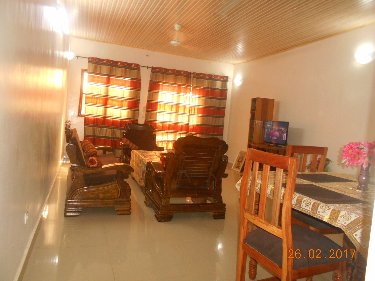 這個寧靜的房源為全家人提供輕鬆的住宿體驗。 花園東邊和西邊的沙箱,為小孩享受早晚的陰涼。 適合年長者搖擺的秋千。 步行3分鐘即可抵達Bangréogo Forest和市場園藝區。 開車5分鐘即可抵達Cobodim超市或Dassasgho市場,距離市中心10/15分鐘路程,視交通情況而定。 與水壩的距離相同。 非常好的街區,沒有交通堵塞。