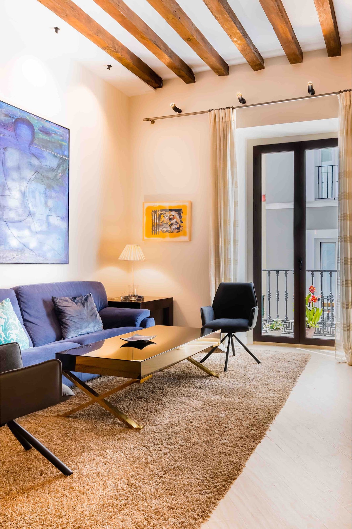 優雅現代的閣樓位於一棟象徵性建築中,曾經是聖Laureano修道院。 公寓擁有高高的木樑天花板,寬敞的空間,以白色和藍色為主角,傳達出平靜和放鬆。 距離河流150米,對面有一個公共停車場,距離機場巴士站1分鐘,距離塞維亞最著名的商業區域: La Campana和Sierpes 3分鐘。 距離主要古蹟、大教堂、吉拉爾達、聖克魯斯街區約10分鐘路程。