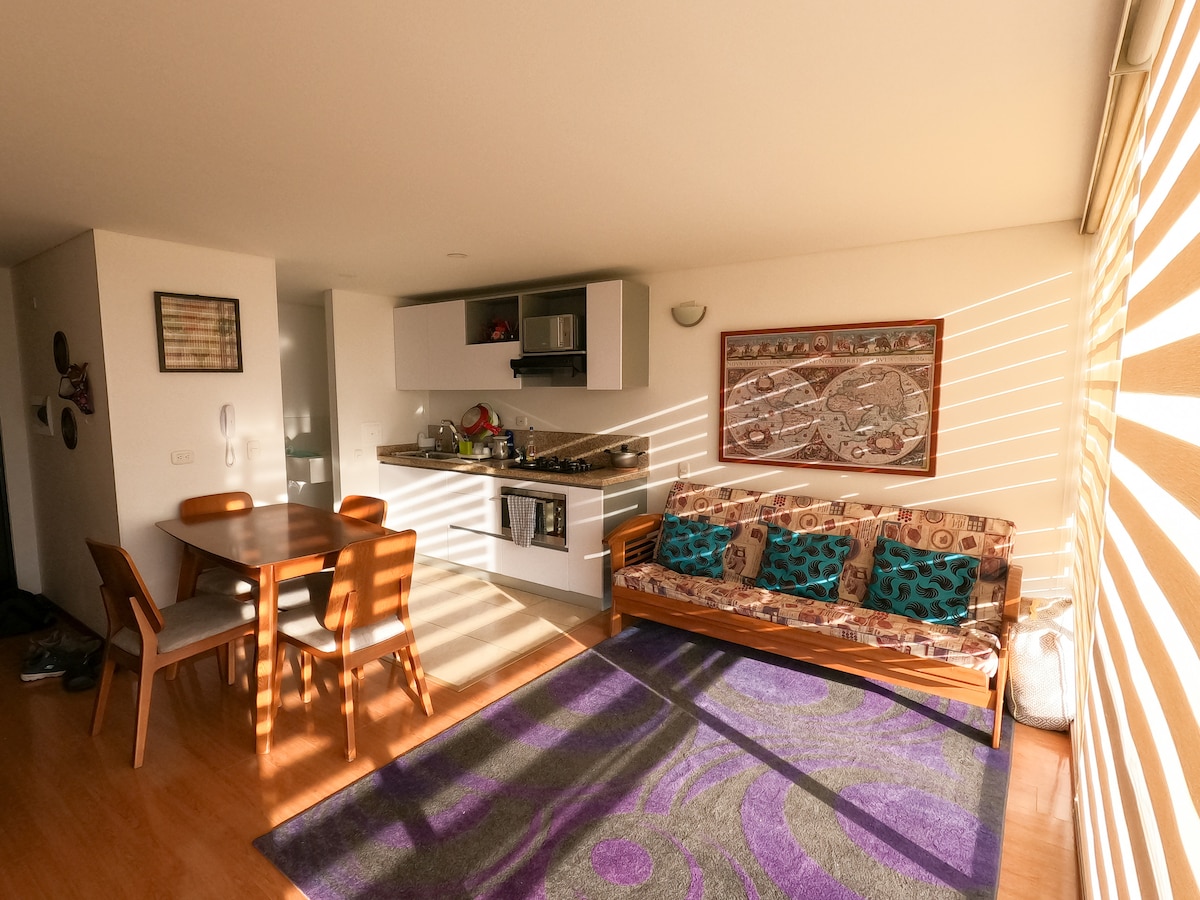 波哥大景觀迷人的明亮舒適 Loft 空間 入住波哥大歷史中心的陽光充足 Loft 空間。這間時尚的單臥室公寓配有舒適的雙人床和舒適的沙發,非常適合第三位房客入住。亮點是有烤肉架的寬敞共用露台,您可以在那裡放鬆身心,欣賞這座城市的壯麗景色。非常適合想要體驗波哥大魅力、享受舒適與時尚的人士。