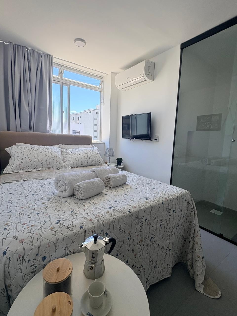我們的單間公寓是一個緊湊但非常實用和舒適的房源,配備了所有基本需求和日常設施。 配備所有家居用品、電子產品和家電 它位於弗洛里亞諾波利斯市中心,毗鄰大都會大教堂和11月15日廣場 它非常靠近Centro Sul Eventos,附近有各種商店、市場、餐廳、小吃店和我們迷人的島嶼的各種景點。