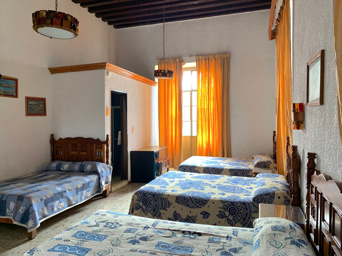 Habitación en hotel a precio de hostal para hasta 8 personas en económico Hotel Atilanos, con ubicación inmejorable a solo dos calles de la histórica Catedral de Morelia. Habitaciones sencillas, limpias, amplias y en pleno Centro Histórico. Ven a caminar por las calles del Centro Histórico de Morelia, a conocer sus parques y espacios abiertos, restaurantes, bares, y todo el entretenimiento y cultura que tiene para ofrecerte.
