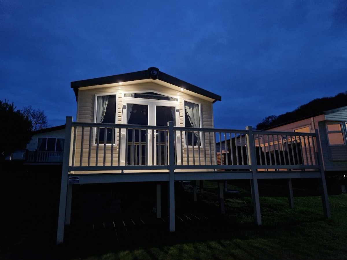 俯瞰卡迪根灣的迷人景色。 觀賞海豚。步行不到5分鐘即可抵達海灘和主要建築羣。 Swift Bordeaux 8 berth static caravan. 電視、WiFi、瓦斯爐。 微波爐。冰箱/冰櫃。空氣炸鍋。 雙人臥室和兩間雙牀房。 拉出沙發牀。 環繞甲板。提供牀上用品和毛巾。預留停車位。 只要抵達日期和時間與Haven度假住宿相匹配,即可購買遊戲通行證。 歡迎一隻小型/中型犬