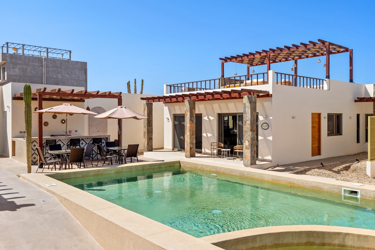 歡迎來到 Villas Tres Tierras! 這間令人驚豔的現代2間臥室、2間浴室房源,擁有美麗的泳池,坐落在0.9英畝的廣闊物業上。 開車5分鐘或步行10-15分鐘即可抵達南下加利福尼亞州最令人驚嘆的游泳海灘之一。 Tres Tierras是擺脫日常生活喧囂的完美之選。 這個寧靜的度假勝地是您的家外之家,您可以在這裡放鬆身心,恢復活力。歡迎來到Baja!