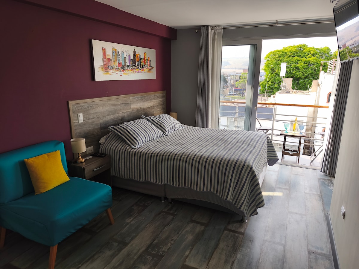 Comdo和現代化公寓。 位於Tacna中心的Loft空間。 非常適合旅客、情侶或家庭入住。 距離阿馬斯廣場( Plaza de Armas ) 03個街區,靠近超市、餐廳和策略點,可輕鬆探索。 大樓現代化、安全,位於安靜的區域。 房間配有2張牀, 2個廣場中的1個,另一個是1個半廣場,客廳裡有2個廣場的沙發牀。 廚房配備了度過美好時光所需的一切。電視和WIFI
