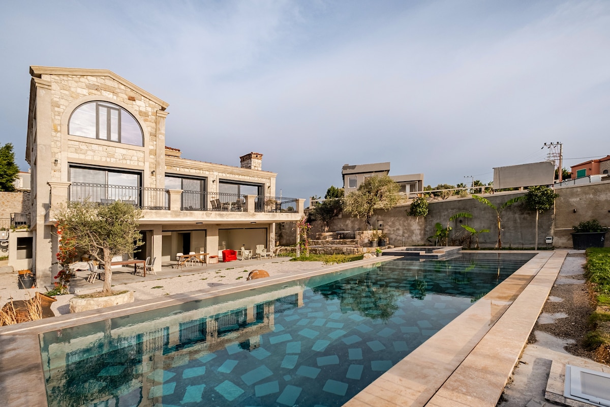 從帕薩利馬尼( Pasalimani )最近翻修的10年空間,醒來即可欣賞到愛琴海和希臘羣島的迷人景色。 位於一個安靜的區域,距離海灘、阿拉卡蒂( Alacati )和切斯梅碼頭( Cesme Marina )僅幾步之遙。 放鬆奢華度假所需的一切。 由於有WiFi連線,非常適合在家工作。 這個空間的亮點是私人泳池,這是在炎熱的一天涼爽、享受美麗日落或在晚上放鬆身心的完美地點。