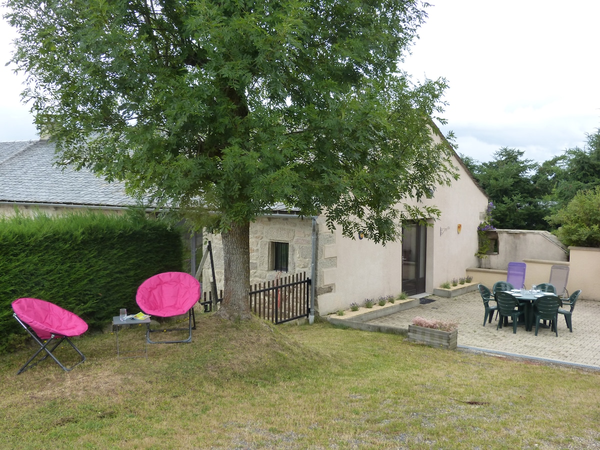 Situé au lieu-dit Orfeuille Nord de la Lozère entre Aubrac et Margeride, à 3km de l'autoroute A75 proche d'un plus beaux village de france ( Malzieu-Ville) ainsi que de nombreux parcs animaliers ( parc aux bisons, aux loups) accro branches tyroliennes région idéale pour rando pêche nous vous proposons un logement d'environ 40m2 au rez de chaussée d'une maison en pierre et décoré dans le style campagnard Il donne accès à une terrasse privative donnant sur un grand parc ombragé et clôturé.
