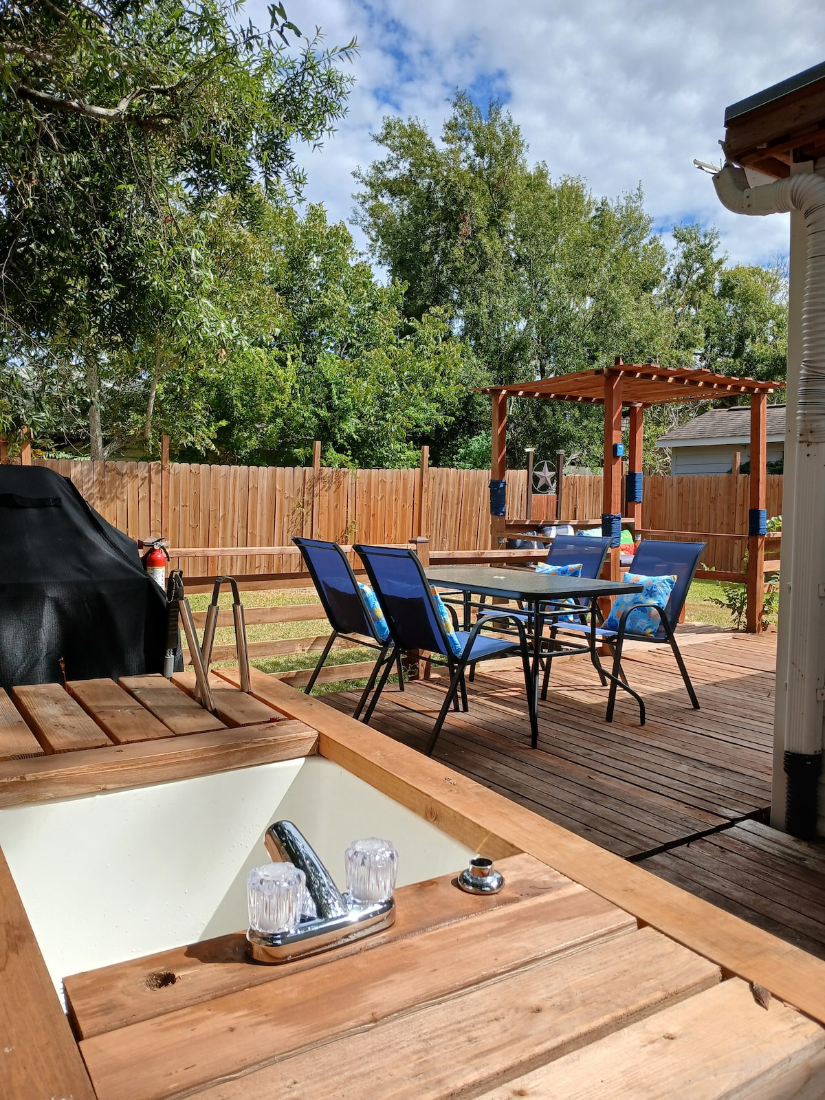 德州斯托韋爾的舒適兩房度假屋 入住德州斯托韋爾這間迷人的兩房房源,在鄉間度過美好時光。 非常適合家庭或小團體入住,設有設備齊全的廚房、2 個舒適的起居區和寬敞的院子,配有大型後露台、火爐和美麗的日落景觀。 你可以在森林中漫步,或探索附近的景點,如阿納瓦克野生動物保護區、水晶海灘和溫尼貿易日。 寵物友善,有 Wi-Fi。 享受鄉村生活的寧靜,馬上預訂住宿!