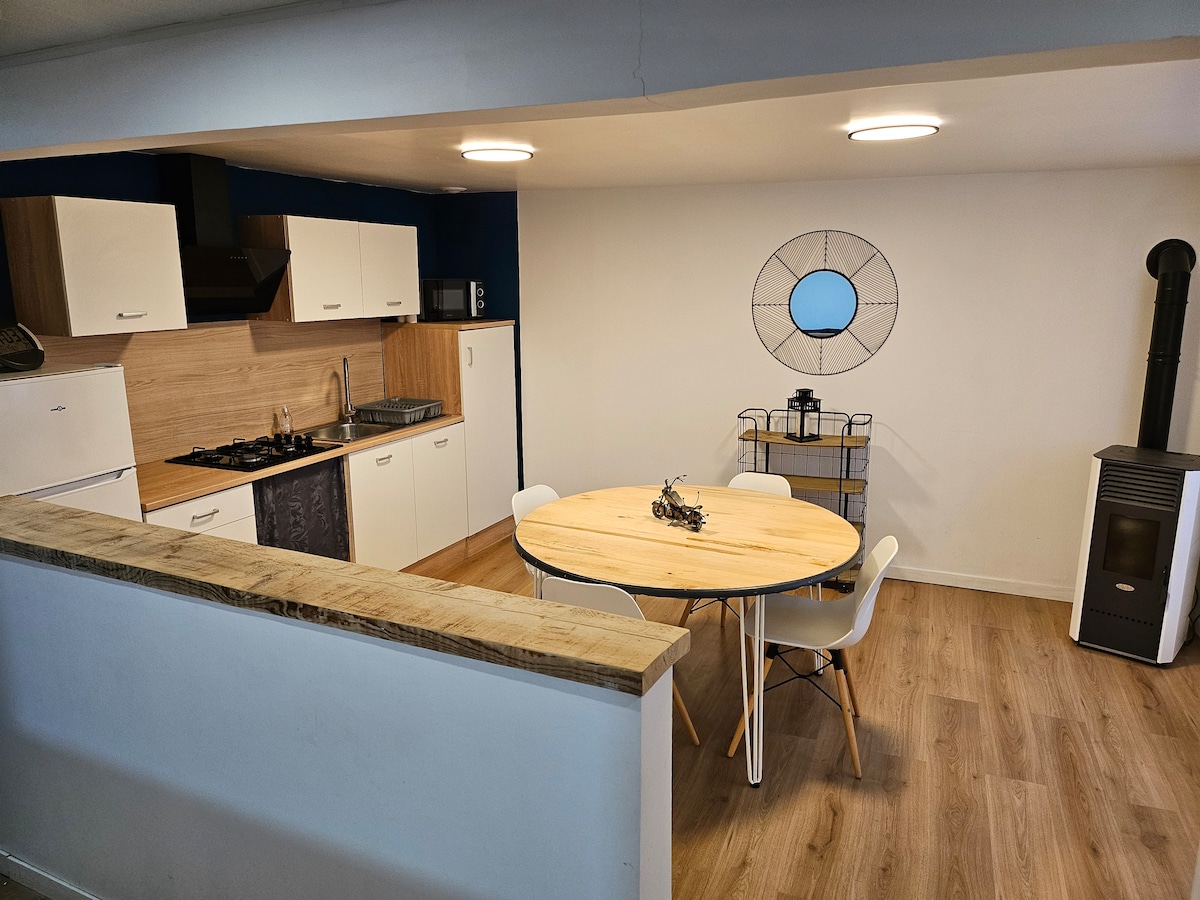 Maison de 1800 au coeur d’un petit bourg très paisible. Cuisine, bar, toilettes et table face à la cheminée au rez de chaussée. Grande chambre lumineuse à l’étage avec un lit de 160, magnifique baignoire en bois au pied du lit. Endormez-vous au son de la fontaine du village. Salle de bain avec vasque en pierre volcanique. Salon cosy pour se reposer ou télé-travailler, logement relié à la fibre Petit Balcon donnant sur la rue qui amène de la luminosité au logement Jardin en accès partagé