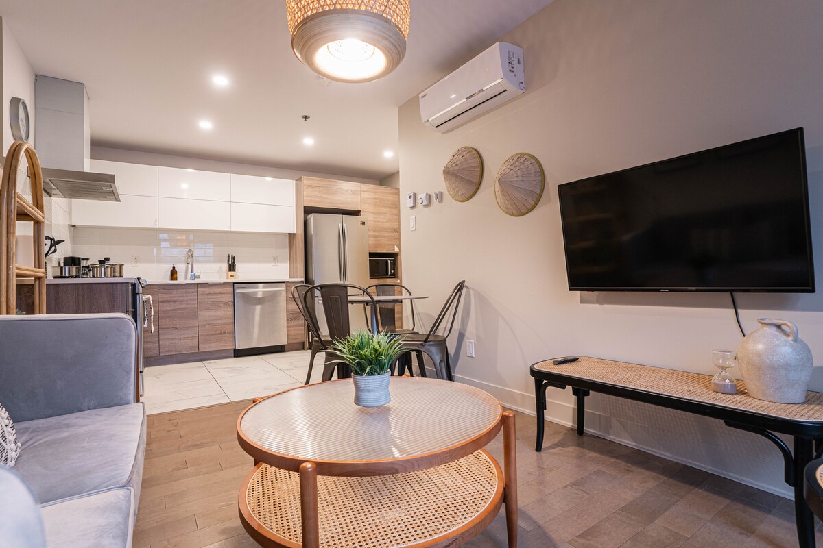 位於蒙特利爾娛樂區中心的迷人新建單間公寓。步行 5 分鐘即可抵達 Berri-UQAM 地鐵站,步行 10 分鐘即可抵達藝術廣場。單間公寓配有高級電器和Nespresso咖啡機。享受雙人床尺寸的Murphy床、智慧42吋4K電視和超高速Wi-Fi。在私人陽臺上放鬆身心,俯瞰內院。非常適合短期和長期住宿,附近有充滿活力的聖凱瑟琳街和當地景點。您在蒙特婁的理想家庭基地!
