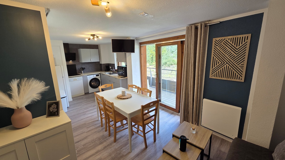 Confortable appartement de 41m2 type 2P et cabine, 6/7 couchages, terrasse 6m2 et casier à ski au rez de chaussée avec arrivée autonome. une caution de 500euro en chèque est demandée. Situé à proximité des remontées mécaniques, jardin des neiges et club ESF, à 150m de la supérette Sherpa / dépôt de pain et des différents commerces. Arrêt navette gratuite devant la porte d'entrée. L'appartement est très bien situé, plus besoin de prendre la voiture pour profiter de la station une fois garée.