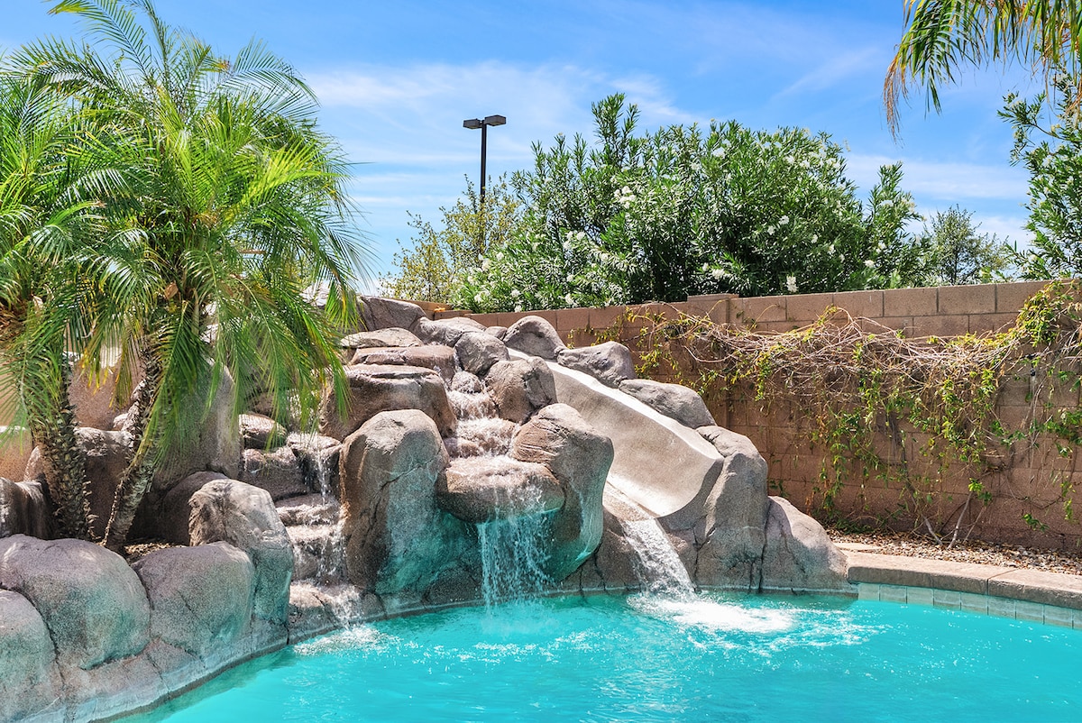 歡迎來到您的沙漠度假勝地! 享受開放、通風的布局,寬敞的客廳、設備齊全的廚房、時尚的用餐空間和讓人感覺像家一樣的臥室。 走出房門,即可享受專為放鬆和家庭娛樂而設計的私人後院。 在溫水泳池和水療池中泡一下,在露臺鞦韆上放鬆身心,或點燃燒烤爐享用美味晚餐。 距亞利桑那州運動場(Arizona Athletic Grounds)僅15分鐘路程。 別忘了在Las Colinas高爾夫俱樂部玩一輪!