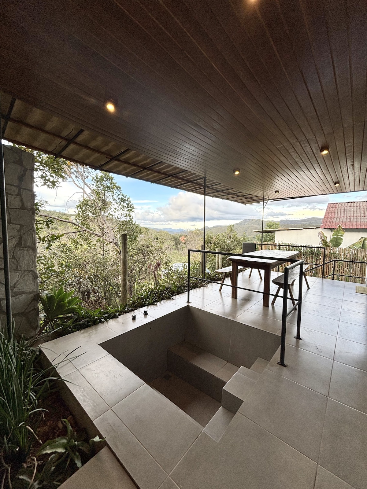 在森林中,玻璃和木材製成的溫馨私人小屋,四周環繞著純淨的水域和豐富的自然景觀。 位於一個非常特別的村莊,磨坊,距離上天堂(Alto Paraíso)12公里(土路),這裡是一個迷人的旅遊景點,天使和大天使瀑布。 住宿的建造優先考慮舒適性和隱私。 非常適合情侶入住。除了陽臺上的按摩浴缸外,房客還可以在距離平房僅50公尺的露臺上享受河流浴和日光浴。