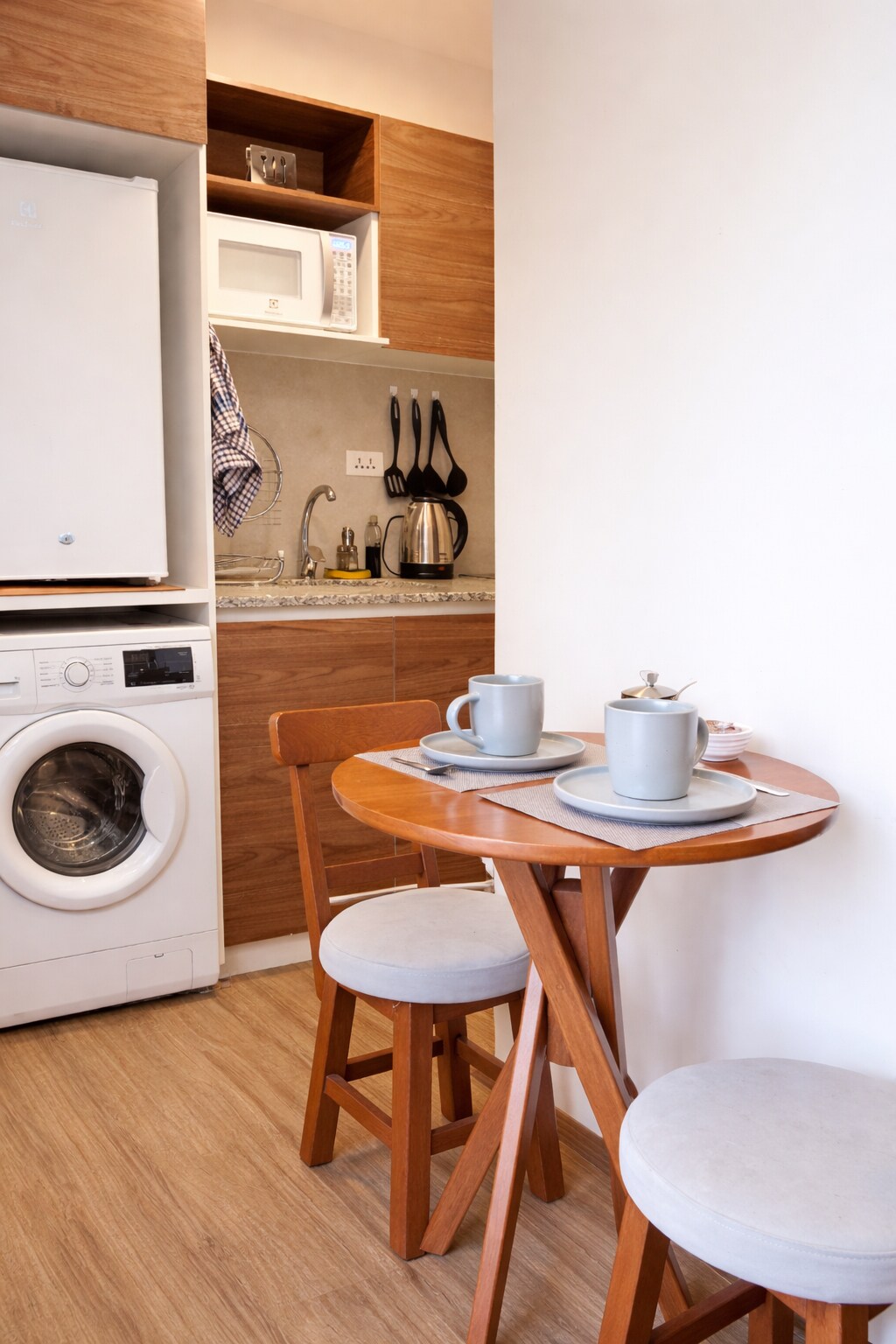 這個地方具有戰略位置。 大樓有洗衣和烘乾服務、工作空間和自行車停車位。 單人房配有雙人牀、廚房、迷你吧、微波爐、防風衣和洗碗機。 這裡還有所有的炊具。