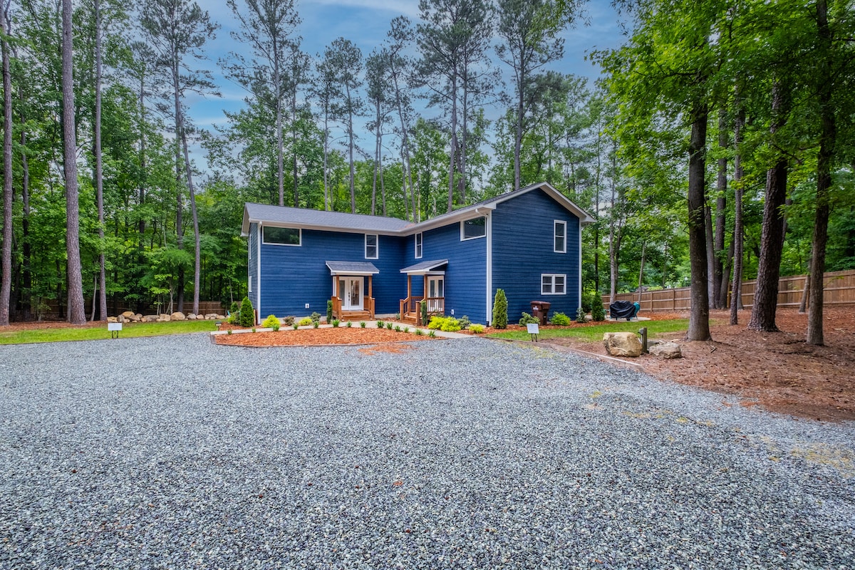 Relax and recharge in a modern, artist-designed passive solar home tucked into the woods just minutes from downtown Durham and Duke University. This cabin-style retreat blends nature, comfort, and convenience — ideal for weekend getaways, visiting Duke, or extended stays. Inside you’ll find original artwork, abundant natural light, and a professionally equipped kitchen. Outside, enjoy birdsong and mature trees while staying close to Durham’s restaurants, coffee shops, breweries, and shopping.