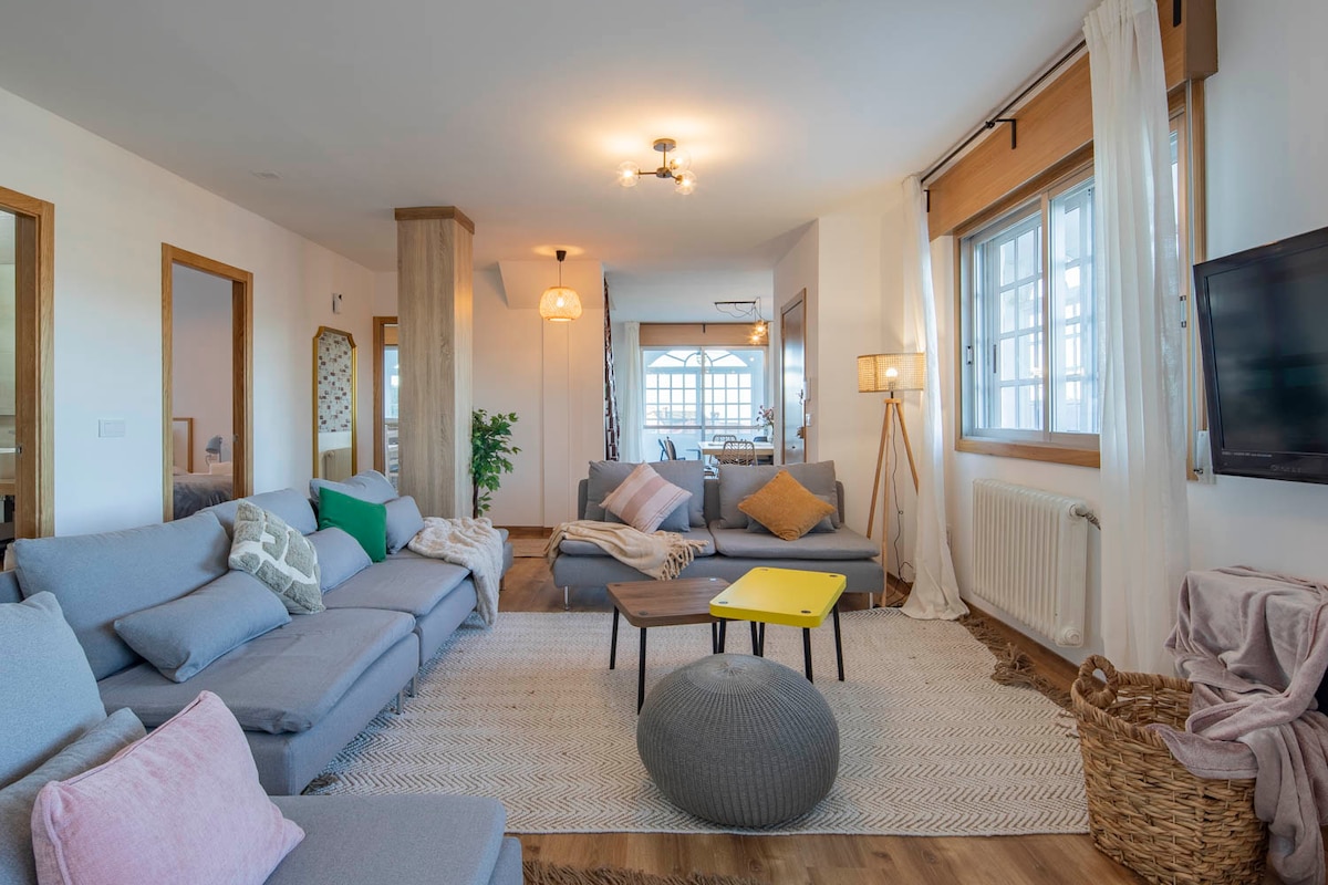 舒適現代化的公寓,距離西班牙廣場( Plaza España )新建築物僅幾步之遙 50公尺,有廚房、客廳和獨立室外室。 這裡還有一個大露臺。 家具和設備齊全,配有牀單、毛巾、陶具、陶具、電視、電視、洗衣機、洗衣機、洗碗機和網路( WiFi )。 距離Corte Inglés 200米,距離火車站和公車站600米。 您可以步行( 10分鐘)前往舊城區和海事站。 私人停車場50米,白色區域(免費) 100米。
